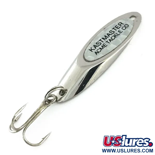 Erottuvat sateenkaarihologrammi-upotukset on keskitetty tämän 5,2 cm (2 tuumaa) pitkän metallisen lusikkauistimen kiillotettuun nikkelirunkoon. Prismapinnassa on ikoninen 'KASTMASTER ACME TACKLE CO' -leima, ja uistimen tuotekoodi on 9449, mikä heijastaa sen amerikkalaisen alkuperän korkeita valmistusstandardeja. Monikäyttöisessä 10,5 g (3/8 oz) painossa massiivimetallirunko on koneistettu tarkasti tiettyyn tasapainoon, joka takaa vakaan suorituskyvyn syvän veden jiggauksessa tai kovassa virtauksessa kelattaessa. Nikkelipinnoite tarjoaa erittäin heijastavan pinnan, ja suomukuvioinen holografinen upotus lisää visuaalista välkettä. Kunnoltaan 5/5 oleva yksilö on puhdas ja heijastava, ja siinä on alkuperäiset varusteet, kuten vahva uistinrengas ja terävä kolmihaarakoukku. Aerodynaaminen profiili on suunniteltu minimoimaan ilmanvastus pitkiä heittoja varten, mikä tekee tästä alkuperäisestä Acme-uistimesta luotettavan valinnan kaukaisten petokalaparvien tavoittamiseen.
