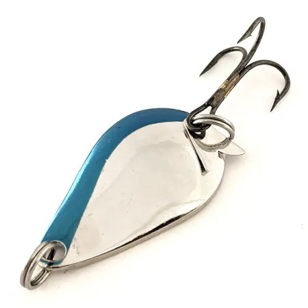 Nikkelöinti yhdistettynä näyttävään siniseen sivuraitaan määrittelee tämän 3,5 cm (1 1/2") lusikkauistimen ulkonäön. Takapuolelle on selkeästi leimattu "K.O. WOBBLER", ja tässä Acmen Yhdysvalloissa valmistamassa yksilössä on tuotekoodi 11862. Pisaranmuotoinen runko on säilyttänyt korkeakiiltoisen loistonsa. Rakenne sisältää erityisen "Sonic flipper tail" -osan — pienen metalliläpän takana — joka on suunniteltu luomaan värinää veteen yhdessä alkuperäisen kolmihaarakoukun kanssa. 7 gramman (1/4 oz) painoisena uistin tuntuu vankalta ja laadukkaalta, edustaen aikakautensa valmistusstandardeja. Tämä kyseinen uistin on 5/5-kunnossa, pinta on erittäin puhdas ja osat ovat hyvin säilyneet. Kaksi uistinrengasta takaavat turvalliset kiinnityspisteet sekä siimalle että koukulle, varmistaen uinnin vakauden.