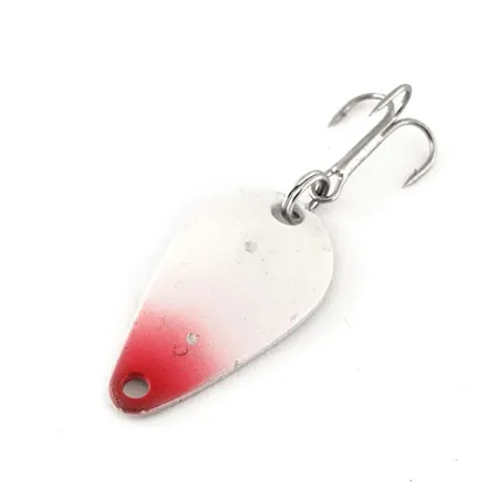 White Pearl -viimeistely kirkkaanpunaisella kärjellä erottaa tämän yksilön, joka on klassinen väriyhdistelmä aktiivisille petokaloille. Niklatun kääntöpuolen pintaan on selkeästi meistetty nimi K.O. WOBBLER, mikä kertoo sen alkuperän olevan yhdysvaltalainen Acme Tackle Company. Tämä 1/8 unssin (3,5 g) lusikkauistin on pituudeltaan tasan 1 1/2 tuumaa (3,5 cm) ja se on luetteloitu tuotekoodilla 12260. Heittokalastukseen suunniteltu uistin on rakenteeltaan tarkoitettu jäljittelemään pienen syöttikalan liikettä ja tuottamaan selkeitä värähtelyjä kelauksen aikana. Varustukseen kuuluu vankka kolmihaarakoukku, joka on kiinnitetty uistinrenkaalla, ja siinä on vain vähäisiä merkkejä aiemmasta käsittelystä. Kunto on vahva 4/5, sillä lusikka on säilyttänyt alkuperäisen kiiltonsa ja maalipinnan eheyden. Kapeassa päässä oleva kiinnitysreikä mahdollistaa siiman suoran kiinnityksen tai viehelukon käytön tässä pisaranmuotoisessa heittovieheessä.