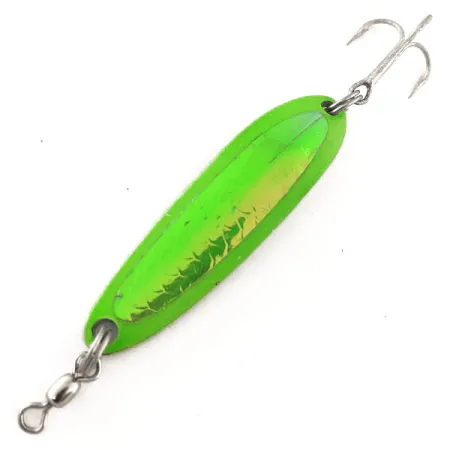 Tämä 5,5 cm pituinen ja kapeaprofiilinen Luhr Jensen Krocodile Die #3 UV on suunniteltu halkomaan ilmaa pitkiä heittoja varten syviin vesiin. Tämä 10 g (1/3 oz) painoinen lusikkauistin on viimeistelty kirkkaanvihreällä sävyllä, ja sen keskellä on heijastava prismateippi välkkeen maksimoimiseksi. Valon vähentyessä UV-ominaisuudet luovat hohtavan siluetin, mikä on ratkaisevan tärkeää syvän veden lohien ja taimenien kalastuksessa. Tuotekoodilla 11967 tunnistettu yksilö on 5/5-kunnossa, eikä maalatuissa pinnoissa tai tehdasvarusteissa ole kulumia. Varustukseen kuuluu kestävä uistinrengas, terävä kolmihaarakoukku ja laadukas leikari, joka estää siiman kiertymistä tasaisessa kelauksessa.