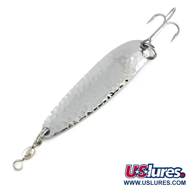 Vasaroitu nikkelipinta antaa Krocodile Die #4 -lusikalle monitahoisen pinnan, joka on suunniteltu heijastamaan valoa eri kulmista. Tämä Luhr Jensen -lusikkauistin, tuotekoodiltaan 8426, painaa 19g (2/3oz) ja on pituudeltaan 6,5cm (2 1/2"). Vieheen taustapuolelle on leimattu valmistajan nimi, "KROCODILE"-malli sekä alkuperämerkintä "Hood River, Ore. Made in USA". Sen kapea ja painotettu profiili on suunniteltu pitkiin heittoihin syviin vesikerroksiin, ja se ui sille ominaisella vaappuvalla liikkeellä sekä heitossa että uistelussa. Varustukseen kuuluu vankka kolmihaarakoukku ja leikari, jotka on kiinnitetty uistinrenkailla. Tämä yksilö on 5/5-kunnossa, ja siinä on kirkas metallinen hohde molemmin puolin sekä puhtaat alkuperäisosat.