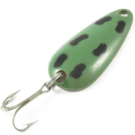 Messinkiseen alapuoleen on selkeästi meistetty "LEN THOMPSON No. 00" -merkintä, joka tunnistaa tämän kanadalaistyylisen klassikon. Yläpuolella on himmeä metsänvihreä pohjaväri, jota koristaa seitsemän mustaa täplää – kuvio, jota käytetään usein matkimaan sammakkoeläimiä tai täkykaloja. Lusikan pituus on 5 cm (2") ja paino 14 g (1/2 oz). Se on valmistettu umpinaisesta messingistä, jota valmistaja on käyttänyt vuodesta 1929 lähtien varmistaakseen tietyn tasapainon. Tämä painonjakauma mahdollistaa hitaasti vaappuvan liikkeen kelauksen aikana. Varustukseen kuuluu yksi kolmihaarakoukku, joka on kiinnitetty uistinrenkaalla perään, ja siiman kiinnitysreikä sijaitsee suippenevassa kärjessä. Tuotekoodilla 3217 luetteloitu yksilö on 4/5-kunnossa; maali on säilynyt hyvin yläpuolella ja kääntöpuolella on kirkas, puhdas messinkipinta. Heittokalastus tai uistelu tällä lusikkauistimella on perinteinen tapa pyytää haukea, lohta ja harmaanieriää.