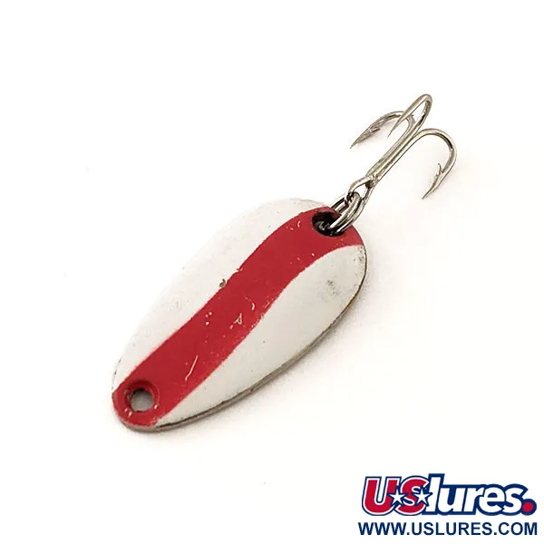 Tämä tasan 2,5 cm (1") pitkä kompakti Len Thompson #6 lusikkauistin kantaa mukanaan vuodesta 1929 tuotannossa olleen kanadalaisen tuotemerkin perintöä. Messinkirunko on viimeistelty etupuolelta klassisella puna-valkoisella raitakuviolla, kun taas kääntöpuolella on kiillotettu kultainen pinta, johon on leimattu teksti «LEN THOMPSON NO. 6». Painoltaan 3,5 g (1/8 oz) oleva uistin (tuotekoodi: 12066) on tasapainotettu mahdollistamaan hidas, huojuva uintiliike, joka jäljittelee pikkukalan liikehdintää. Varusteet ovat järeät: uistimessa on yksi kolmihaarainen koukku ja vahva uistinrengas, joka on suunniteltu kestämään heittokalastusta ja jiggausta. Tämä yksilö on luokiteltu 5/5-kuntoon, ja sen maalipinta sekä metallipinnat ovat puhtaat. Pääasiassa taimenelle, lohelle ja ahvenelle käytetty malli on säilyttänyt asemansa kalastajien luotettavana perusvieheenä vuosikymmenien ajan.
