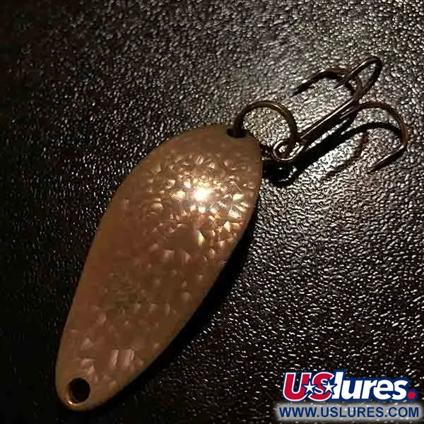 Heijastaen valoa monimutkaisen pintakuvion läpi, 'Crystal'- tai Golden Scale -viimeistely määrittelee tämän harvinaisen Seneca-variantin. Painoltaan 7g (1/4oz) ja pituudeltaan 4cm (1 1/2"), tämä lusikkauistin kantaa Seneca Lure Companyn tunnusomaista käsityötaitoa ennen sen siirtymistä Acmen omistukseen 1980-luvun alussa. Kääntöpuolella on klassiset 'LITTLE CLEO'- ja 'WIGL-LURE'-leimat sekä 'A SENECA LURE' -merkintä, joka tunnistaa sen vintage-alkuperän tuotekoodilla 11940. Kuntoluokituksella 5/5 viimeistely säilyttää alkuperäisen loistonsa ja metalli on puhdas ja hyväkuntoinen. Tässä USA:ssa valmistetussa lusikassa on yksinkertainen uistinrengaskiinnitys kolmihaarakoukkuun, mikä on tyypillistä aikakauden suoraviivaisille komponenteille.