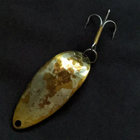 Tämän heittolusikan tukeva 14 gramman paino tuntuu jämäkältä kädessä, ja se on suunniteltu tavoittamaan syvemmät vesikerrokset kelauksen aikana. Pituudeltaan 5,5 cm:n mittaisessa Seneca Lure Co:n valmistamassa vieheessä on ikoninen 'Hula Girl' -tanssijaleima sekä 'Wigl Lure'- ja 'Little Cleo' -merkinnät kääntöpuolella. Tämä erityinen kaiverrus oli tyypillinen alkuperäiselle yhdysvaltalaiselle tuotannolle ennen kuin Acme osti malliston 1980-luvulla ja poisti lopulta tanssijakuvan muotista. Tämän tuotekoodilla 22211 tunnistetun yksilön nikkeli/pronssi-viimeistelyssä on nähtävissä kulumaa, jossa nikkelipinnoite on ohentunut paljastaen perusmetallin, mikä vastaa kuntoluokitusta 3/5. Siinä on edelleen terävä kolmihaarakoukku ja vahva uistinrengas pyrstössä, säilyttäen alkuperäisten Seneca-vieheiden keräilijöiden arvostaman varustuksen.