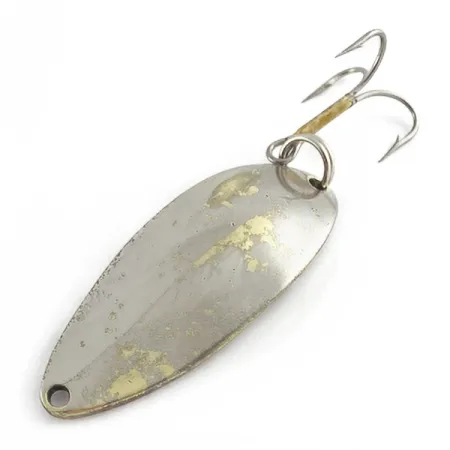 Nikkelin ja kullan sävyt sulautuvat yhteen tämän 5,5 cm (2 1/4") lusikkauistimen pinnalla, kertoen tarinaa vieheestä, joka on nähnyt vesistöjä. Tämä nimenomainen yksilö, tuotekoodiltaan 23493, on keräilyharvinaisuus: Seneca Luren Yhdysvalloissa valmistama "Hula Girl" -versio. Koveralla taustapuolella on yhä nähtävissä ikoninen hulatanssijan leima sekä "LITTLE CLEO"- ja "WIG LURE" -merkinnät – ominaisuus, joka poistettiin kuuluisasti Acmen otettua tuotannon haltuunsa 1980-luvun alussa. Monet kokeneet kalastajat vannovat, että juuri tämä leima oli vieheen legendaarisen maineen salaisuus. 14 gramman (1/2 oz) paino takaa hyvän heittopituuden. Alkuperäiset osat, mukaan lukien uistinrengas ja kolmihaarakoukku, kantavat merkkejä vuosien varrelta, ja vieheen kuntoluokitus on 3/5. Kyseessä on aito kalastushistorian helmi ajalta ennen kuin muotoilua suoraviivaistettiin nykyaikaista massatuotantoa varten.