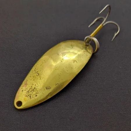 Kullanvärinen pinnoite kiinnittää heti huomion tässä 14 gramman (1/2 oz) lusikkauistimessa, jossa on vuosikymmenten ajan kalastajia palvellut klassinen pisaramainen muoto. Kuntoluokitukseltaan 3/5 oleva metallipinta kertoo tarinaa historiastaan vesillä pienellä pintakulvalla, mutta se on silti vankka ja valmis joko kokoelmaan tai suoraan käyttöön. Kun käännät 5,5 cm (2 1/4") pituista runkoa, löydät metalliin stanssatun ikonisen "Hula Girl" -tanssijatytön – joka on merkki Senecan alkuperäisestä tuotannosta ennen merkin siirtymistä Acmelle 1980-luvun alussa. Monet kokeneet kalastajat vannovat juuri tämän version nimeen (tuotekoodi 24090) uskoen vahvasti, että stanssattu hahmo on sen legendaarisen pyyntitehon salaisuus. Varustukseen kuuluu tukeva kolmihaarakoukku, joka on kiinnitetty kestävällä uistinrenkaalla, mikä takaa uistimen kestävyyden aggressiivisten petokalojen iskuissa. Tämä ylpeästi USA:ssa valmistettu yksilö edustaa aikaa, jolloin uistinten valmistuksessa panostettiin yksityiskohtaisiin stanssauksiin, jotka nykyversioista usein puuttuvat.