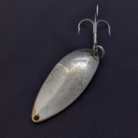 Messinki- ja nikkelipinnat yhdistyvät tässä 21 gramman (3/4 oz) heittolusikassa, jonka klassinen profiili on ollut uistinpakkien vakiovaruste jo vuosikymmeniä. Seneca Lure -yhtiön ennen 1980-luvun alun Acme-fuusiota valmistama uistin kantaa tuotekoodia 24140, ja sen koveralle puolelle on leimattu erittäin haluttu 'Hula Girl' -tanssija. Rungon pituus on 6,5 cm (2 1/2"), ja siinä näkyy historian tuomaa patinaa, vaikka se on säilyttänyt hyvän 3/5-kuntoluokituksen. Taustapuolella näkyvät selvästi 'Little Cleo'- ja 'Wiggle Lure' -kaiverrukset sekä tanssijahahmo – yksityiskohta, jota monet kokeneet kalastajat pitävät uistimen historiallisen menestyksen salaisuutena. Koukutuksena on kestävä kolmihaarakoukku, joka on kiinnitetty uistinrenkaalla, mikä on tyypillistä aikakauden kestävälle amerikkalaiselle laadulle. Toisin kuin myöhemmissä massatuotantoversioissa, tanssijahahmon läsnäolo vahvistaa vieheen vintage-alkuperän ja yhteyden Senecan historiaan.