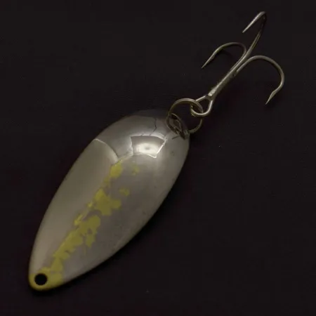 Tämän Senecan valmistaman lusikkauistimen kääntöpuolelle on meistetty selkeästi 3/4 oz (21 g) painomerkintä, joka sijaitsee varhaisen aikakauden Little Cleo -uistimille ominaisen 'Hula Girl' -hahmon rinnalla. Pituudeltaan 6,5 cm (2 1/2") uistimen nikkeli/kulta-viimeistely koostuu kiillotetusta kromipinnasta, jota koristaa teksturoitu kultalehtikuvio. Tämä yksilö (tuotekoodi 24360) edustaa Seneca Tacklen vuonna 1951 perustaneen newyorkilaisen lauluntekijän Charlie Clarkin alkuperäistä visiota. Taustapuolella on tarkka kaiverrus 'Cleo'-tanssijasta, jonka huojuvaa liikettä Clark pyrki jäljittelemään houkutellakseen kaloja. Koska Acme lopetti tanssijakuvan käytön ostettuaan Senecan 1980-luvun alussa, nämä meistetyt versiot ovat historiasta kiinnostuneiden keräilijöiden arvostamia. Tukeva uistinrengas yhdistää alkuperäistyylisen kolmihaarakoukun uistimen perään. Kunnoltaan uistin on tällä hetkellä 4/5; metalli on säilyttänyt kiiltonsa ja meistokset ovat edelleen selkeitä ja luettavissa kaarevalla pinnalla.