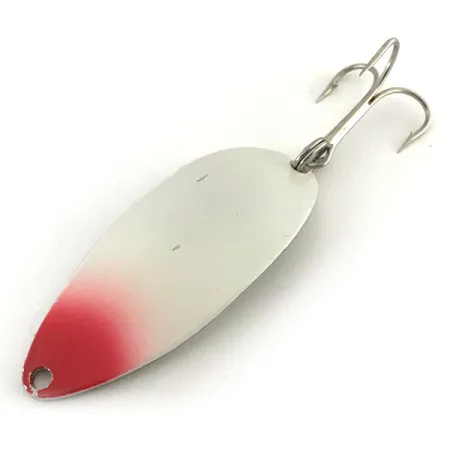 Tämä aito 1/2 unssin (14 g) painoinen Seneca Little Cleo (Hula Girl) -lusikkauistin kantaa ikonista tanssityttö-leimaa niklatulla taustapuolellaan. Tämä nimenomainen yksilö, tuotekoodiltaan 8715, on viimeistelty helmiäisvalkoisella värillä ja kirkkaanpunaisella kärjellä. Pituudeltaan 2 1/4" (5,5 cm) oleva viehe edustaa yhdysvaltalaisen Seneca Lure -yhtiön alkuperäistä tuotantokautta ennen kuin Acme osti merkin 1980-luvun alussa. Keräilijät etsivät usein näitä vintage-versioita, sillä Hula Girl -kaiverrus poistettiin myöhemmistä malleista. Vieheessä on vahva metallirunko, tukeva uistinrengas ja hopeanvärinen kolmihaarainen koukku. Pinnat ovat erittäin siistit, ja vieheen kuntoarvosana on 5/5 hyvin säilyneen maalipinnan ja kirkkaan nikkeliviimeistelyn ansiosta.