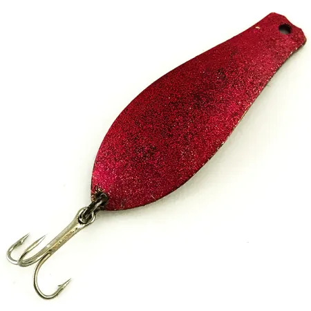 Eloisalla kaksivärisellä tekstuurilla kimaltava 7g (1/4oz) metallirunko tarjoaa silmiinpistävän kontrastin punaisen ja kultaisen hilepinnan välillä. Tämä amerikkalaisvalmisteinen Prescott Spinner, tuotekoodiltaan 5655, on Little Doctor 255 -malli ja sen pituus on 4,7 cm (1 3/4"). Kunto 5/5 heijastaa hilepinnoitteen erinomaista säilyvyyttä ja alkuperäisten osien eheyttä. Yksittäinen kolmihaarakoukku on terävä ja tukevasti kiinni vahvassa uistinrenkaassa. Monipuolisuuteen suunnitellun lusikkauistimen pisaramainen profiili viimeistellään yläosan siistillä kiinnitysreiällä siiman tai perukkeen liittämistä varten.