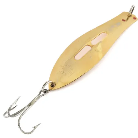 Kirkas kultaviimeistely peittää tämän klassisen uistelulusikan koko 9 cm (3 1/2") pinnan. Prescott Spinner Company suunnitteli Little Doctor 275 -mallin, jossa on ainutlaatuinen uritettu keskiosa – heidän vintage-mallistonsa toiminnallinen tunnusmerkki. Mallin nimi ja koko on stanssattu selvästi 17 g (3/5 oz) metallirunkoon, mikä osoittaa sen ammattilaisperinnön. Tämä kyseinen yksilö on 5/5-kunnossa, ja sen pitkänomainen profiili on säilyttänyt puhtaan ja heijastavan pintansa. Varustettuna tukevalla kolmihaarakoukulla, joka on kiinnitetty kestävällä uistinrenkaalla, se on rakennettu erityisesti uisteluun, jossa paino ja profiili ovat avainasemassa. Valmistajan merkintä on edelleen terävä, ja yleinen laatu heijastaa vuosisadan puolivälin kalastusvälinevalmistuksen standardeja tuotekoodilla 9649.