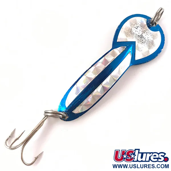 Metallirungon kääntöpuolelle on selvästi leimattu sanat "GLEN L. EVANS LOCO 3", mikä on merkki laadukkaasta alkuperäisestä USA-tuotannosta. Tämä 17 g (3/5 oz) painoinen lusikkauistin on 7 cm (2 3/4") pitkä, ja siinä on näyttävä Nickel / Blue -väritys, jota on tehostettu geometrisilla prismateipeillä. Nämä heijastavat pinnat pyöristetyssä päässä ja kapenevassa rungossa ovat ominaisia tuotekoodin 4535 sarjalle. Kalastajat käyttävät tätä kokoa yleensä heittokalastukseen tai uisteluun tyynissä vesissä, erityisesti kun hauki lymyilee noin 1,0 metrin (3 ft) syvyydessä. Varusteet ovat erittäin siistit, ja niihin kuuluu uistinrengas siiman kiinnityksessä sekä terävä kolmihaarakoukku perässä. Kuntoluokitukseltaan 5/5 oleva sininen pinta on säilynyt syvänä ja kirkkaana kiiltävää nikkelipinnoitetta vasten.