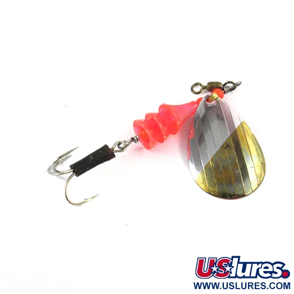 Tämä klassinen Kanadassa valmistettu lippa on pituudeltaan 8,25 cm (3 1/4 tuumaa) leikarista koukun kärkeen, ja sille on ominaista erottuva kyynelenmuotoinen lehti. Lehden etupuolen viimeistely on jaettu kiillotetun nikkelin ja messingin kesken, kun taas kääntöpuolella on tasainen punainen pinnoite. Kanadalaisen kalastushistorian peruspilari Lucky Strike valmisti Coffee Spoon -mallin (tuotekoodi 2595) kevyellä 7 g:n (1/4 oz) painolla, joka soveltuu monille makean veden lajeille. Läpikuultava oranssi, porrastettu muovirunko toimii visuaalisena keskipisteenä lankajohdossa, joka päättyy mustalla suojuksella varustettuun kolmihaarakoukkuun. Tämä yksilö on 4/5-kunnossa, ja sen viimeistelyt sekä metalliosat ovat säilyneet erittäin siisteinä. Messinkinen tynnyrileikari on valmiiksi kiinnitetty etulenkkiin helpottamaan siimanhallintaa heitoissa ja uistelussa.
