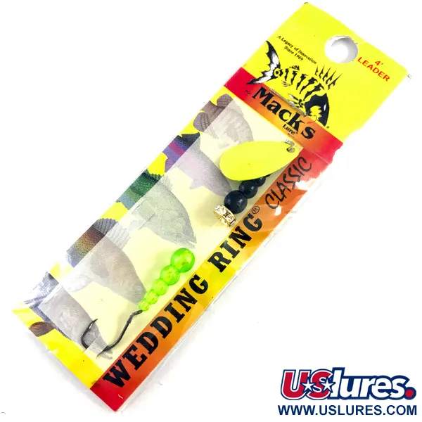 Fluoresoivat vihreät ja syvänmustat helmet vuorottelevat tässä perinteisessä lippakokoonpanossa luoden voimakkaan kontrastin. Sarjan huipulla on kirkas chartreuse-värinen lippalehti, jota täydentää kristalleilla koristeltu „wedding ring“ -välike – Mack's Lure -valmistajan tavaramerkki jo vuosikymmenten ajan. Washingtonin osavaltiosta peräisin oleva 7 cm (2 3/4") viehe on suunniteltu erityisesti kevyeen vetouisteluun, jossa näkyvyys on avainasemassa. Pakkaus sisältää tehdasasenteisen 10,16 cm (4") perukkeen, joten 2 g (1/16 oz) valmius on heti kalastuskunnossa. Tämä tuotekoodilla 4329 varustettu yksilö on käyttämätön ja alkuperäisessä kelta-punaisessa pahvipakkauksessaan. Yksittäinen offset-koukku on sijoitettu helminauhan tyveen noudattaen perinteistä mallia, jota Mack's on käyttänyt 1960-luvulta lähtien.