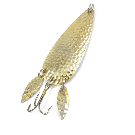 Vasaroitu kultapinta määrittää tämän klassisen amerikkalaisen lusikkauistimen pisaranmuotoisen rungon. Peräosaan kolmihaarakoukun rinnalle kiinnitetyt kaksi pientä "Sonic Blades" -lippaa antavat tälle Marathon 2 -uistimelle (tuotekoodi 2080) monipuolisen uintilistan heitto- tai vetouisteluun. Yhdysvaltalainen Marathon-yritys valmisti nämä uistimet messinkirunkoon, joka on nähtävissä tasaisella taustapuolella. Painoltaan 14g (1/2oz) ja pituudeltaan 7cm (2 3/4") oleva uistin on säilyttänyt kirkkaan, heijastavan pintansa. Osat ovat edelleen tukevat, mukaan lukien lisälipat pitävät uistinrenkaat. Tämä yksilö on 4/5-kunnossa, ja siinä on erittäin vähäistä pintakulumaa ja pieniä varastointijälkiä.
