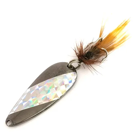 Tasan 1/4 unssia (7 g) painavassa pisaranmuotoisessa lusikkauistimessa on tummanharmaa metallipinta, jota korostaa näyttävä holografinen timanttikuvioinen upotus. Marathon Bait Company, joka toimi Wisconsinissa vuosina 1929–1979, on leimannut nimensä selvästi 1 3/4" (4,5 cm) rungon kääntöpuolelle. Tuotekoodilla 7529 tunnistettu uistin on varustettu koukulla, jossa on hyvin säilynyt ruskeista ja keltaisista höyhenistä koostuva sidos. Kunto on erinomainen (arvosana 5/5), ja prismateipin alkuperäinen kirkkaus on yhä tallella. Tämä Yhdysvalloissa valmistettu yksilö sisältää alkuperäiset osat ja tehtaan sitoman sidoksen, mikä heijastaa aikakautensa valmistusstandardeja.