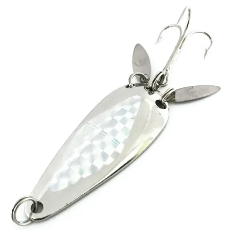 Tämän 6 cm (2 1/4") lusikkauistimen nikkelöidyissä pinnoissa on toisella puolella selkeä timanttikuvio, joka kontrastaa kääntöpuolen korkeakiiltoisen viimeistelyn kanssa. Tämä Wisconsinin Marathon Bait Companyn – osavaltion suurimman uistinvalidmistajan vuosina 1929–1979 – valmistama yksilö on tunnistettavissa tuotekoodilla 8681. Kaksi pitkänomaista "sonic"-lippaa on asennettu takakolmihaarakoukun lähelle. Ne on suunniteltu heijastamaan valoa ja luomaan pakenevan syöttikalan pyrstöä muistuttavaa liikettä samalla kun ne peittävät koukun kärjen. Painoltaan 12 g (2/5 oz) oleva uistin on säilynyt 5/5-kunnossa. Metalliosat ovat edelleen kirkkaat, mikä osoittaa tämän amerikkalaisen klassikon laadun sen viisikymmenvuotisen valmistushistorian ajalta.