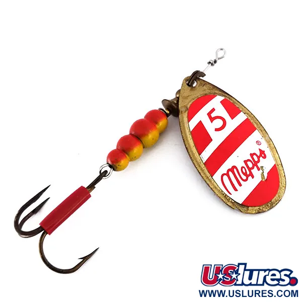 Museoarkisto: Mepps Aglia 5 Lippa, Punainen / Valkoinen / Messinki, 14g, #10136