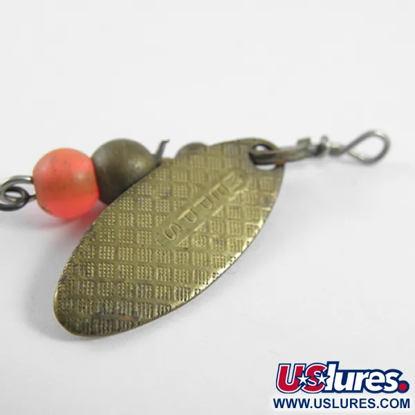 Tämän koon 0 lipan erottuva, pitkänomainen pajunlehtilippa on viimeistelty tekstuurisella messingillä, joka tarjoaa hienovaraista välketettä kelattaessa. Painoltaan 2,6 g (3/32 oz) ja kokonaispituudeltaan 5 cm (2") oleva Mepps Aglia Long (tuotekoodi 1784) edustaa klassista muotoilua, jossa käytetään korkealaatuisia Ranskassa valmistettuja ja USA:ssa koottuja osia. Runko rakentuu kirkkaan oranssin muovihelmen ja kolmen messinkiviimeistellyn metallihelmen ympärille, jotka toimivat langan pääpainona. Messinkilippaan on meistetty valmistajan merkki, mikä takaa sen vintage-aitouden sekä keräilijälle että kalastajalle. Kuntoarviolla 4/5 varustetussa uistimessa on vähäisiä käytön jälkiä, mutta sen metalliosat ovat puhtaat ja kolmihaarakoukku on terävä.