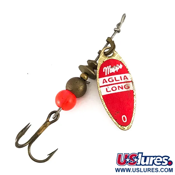 Museoarkisto: Mepps Aglia Long 1 Rainbo Lippa, Punainen / Kulta, 4,5g, Pajunlehti, #7815