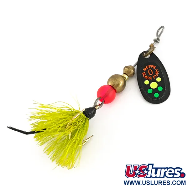 Museoarkisto: Mepps Black Fury 0 Dressed Lippa, Musta/Keltainen/Vihreä, 2,4g, #7599