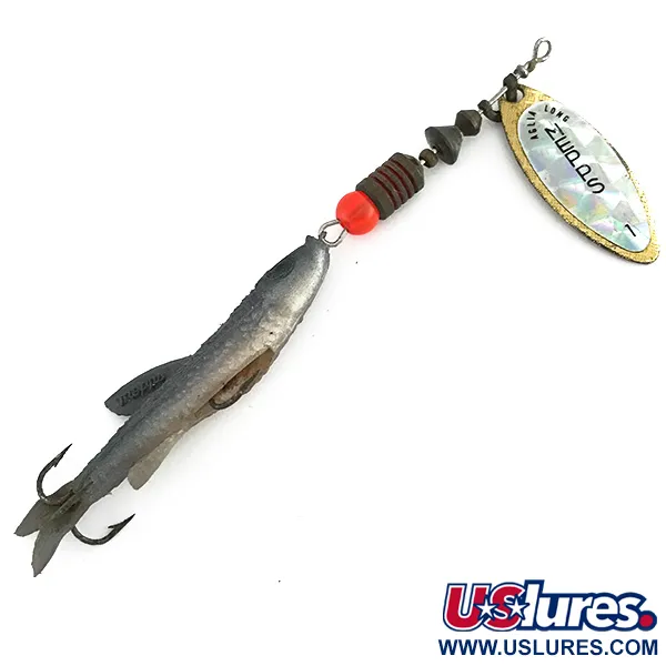 Painoltaan 7 g (1/4 oz), tämä klassinen lippauistin korostaa historiallista yhteistyötä ranskalaisten osien ja amerikkalaisen kokoonpanon välillä. Hopeisessa lipassa on teksturoitu hologrammitarra, joka on suunniteltu heijastamaan valoa, ja siihen on selkeästi meistetty Mepps-nimi. Pituudeltaan 9 cm (3 1/2") oleva kokonaisuus yhdistää perinteisen lipan ja realistisen pehmo-minnow-rungon. Kirkkaanpunainen helmi toimii kiintopisteenä vieheen etuosassa, ja sitä seuraa sarja uritettuja mustia välikappaleita. Pehmeä kumikala on varustettu pyrstössä olevalla kolmihaarakoukulla ja sisäisellä koukulla muodon säilyttämiseksi. Tuotekoodilla 8483 varustettu yksilö on erinomaisessa kunnossa (arvosana 5/5), mikä osoittaa pehmeän rungon eheyden ja metalliosien kiillon. Lipan kääntöpuoli paljastaa ranskalaisten osien laadun, mikä oli tunnusomaista merkin tuotannolle tuona aikakautena.