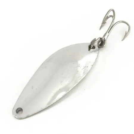 Tämä Japanissa valmistettu 7 gramman (1/4 oz) painoinen lusikkauistin on pisaranmuotoisella rungollaan täydellinen esimerkki siitä suoraviivaisesta ja tehokkaasta muotoilusta, jota Mister Twister suosi metalliviehetuotannossaan. Kiillotettu hopeapinta kattaa koko 4 cm:n (1 1/2") pituuden ja tarjoaa voimakkaan välkkeen vedessä. Kuperalla puolella oleva leimaus näyttää selvästi nimen "Mister Twister Shelby Sportfisher" sekä alkuperämaan "Japan", mikä on keräilijöille tärkeä yksityiskohta alkuperän todentamisessa. Tuotekoodilla 7444 kulkeva yksilö on erinomaisessa kunnossa (arvosana 5/5) puhtaiden pintojen ja säilyneiden osien ansiosta. Hopeoitu kolmihaarakoukku on kiinnitetty tukevasti perään vahvalla uistinrenkaalla, ja kärjessä on valmis kiinnityssilmukka. Painojakauma on painotettu metallilevyn leveämpään päähän, mikä on suunniteltu erityisesti pitkiä heittoja tai pystyjiggausta varten.
