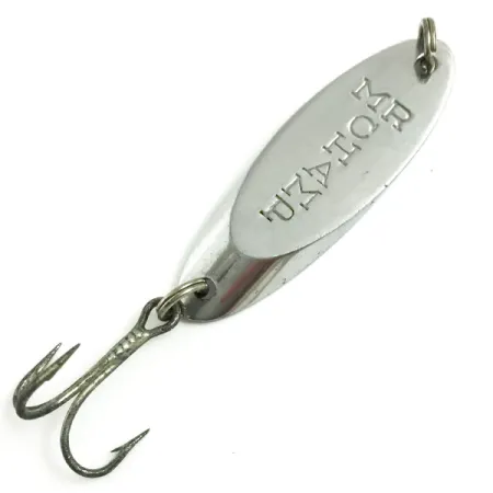 Selvästi meistetty kiillotettuun nikkelipintaan, tämän lusikkauistimen tunnistettava nimi korostaa sen juuria amerikkalaisen Weber-yhtiön vuosisataisessa historiassa. Pituudeltaan 4 cm (1 1/2") ja painoltaan 7 g (1/4 oz) oleva malli on virtaviivainen ja pitkänomainen, mikä tekee siitä sopivan pitkän matkan heittoon tai syvään uisteluun. Tässä nimenomaisessa mallissa (tuotekoodi 6067) on korkealaatuinen pinnoite, josta tuli vakio pohjoisamerikkalaisille kalastajille ennen tuotemerkin siirtymistä Luhr Jensenin luetteloon. Varustukseen kuuluu kestävä kolmihaarakoukku ja uistinrenkaat, jotka ovat erinomaisessa kunnossa ilman merkkejä kovasta käytöstä. Arvosanalla 5/5 varustetun uistimen heijastava pinta ja terävä typografia ovat säilyneet hienosti, osoittaen alkuperäistä USA-laatuista käsityötä. Metallirunko on tasapainotettu uppoamaan nopeasti vesipatsaan läpi säilyttäen uintiasentonsa tasaisessa kelauksessa.