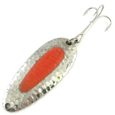 Näiden klassisten lusikkauistimien vasaroitu nikkelipinta tarjoaa teksturoidun pinnan, joka on suunniteltu heijastamaan ja hajottamaan valoa useisiin suuntiin veden alla. Tämä Nebco Pixee UV, tuotekoodiltaan 9460, painaa 3/4 unssia (24 g) ja on pituudeltaan 2 1/2 tuumaa (6,5 cm). Tämän mallin erityinen piirre on lohenmätijäljitelmä-lisäosa; vaikka se näyttää päivänvalossa kirkkaan vaaleanpunaiselta tai lohenväriseltä, se on suunniteltu näkymään erinomaisesti syvässä vedessä. Tässä yksilössä on puhdas ja kirkas pinta paksussa messinkirungossa, eikä alkuperäisessä kolmihaarakoukussa ole kulumisen merkkejä, mikä antaa sille kuntoluokituksen 5/5. Vieheen paino mahdollistaa pitkät heitot rannikkotuulessa tai syvien jokiosuuksien pohjan tavoittamisen, jonne lohet ja kirjolohet kerääntyvät. Rakenne on suunniteltu kestäväksi, ja siinä on vankka metallirunko ja tukevasti kiinnitetty muoviosa, joka on säilynyt ehjänä vuosien ajan.