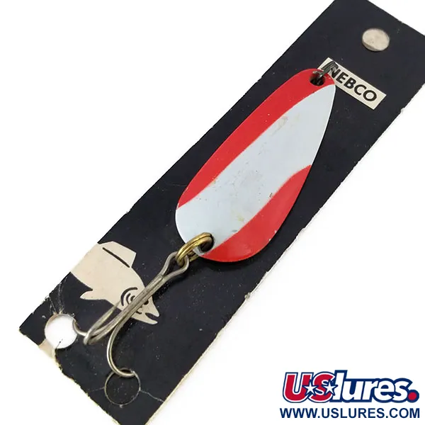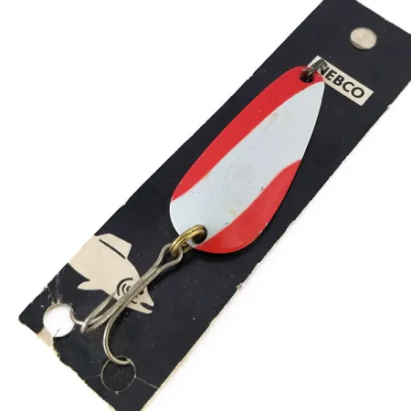 Tämä 5 cm (2 tuumaa) pitkä lusikkauistin on varustettu näyttävällä punavalkoisella vinokuviolla niklatussa rungossa. Tuotekoodilla 10684 tunnettu Nebco Tor-P-Do 2 edustaa klassista vuosisadan puolivälin muotoilua pisaranmuotoisella profiilillaan, joka on suunniteltu heitto- tai vetouisteluun. Metallin kääntöpuolelle on stanssattu Nebco-nimi ja mallimerkintä, ja se on säilyttänyt alkuperäisen metallisen kiiltonsa. Vahva kolmihaarakoukku on kiinnitetty runkoon messinginvärisellä uistinrenkaalla. Tuote on käyttämätön ja kiinni alkuperäisessä mustassa myyntikortissaan, jossa on ikoninen hyppäävän kalan kuva ja brändin logo. Painoltaan 14 g (1/2 oz) lusikka tuntuu tukevalta kokoonsa nähden, ja kapeassa päässä on reikä siiman suoraa kiinnitystä varten.