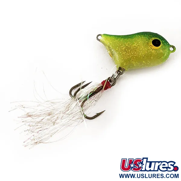 Hopeisella välkkeellä ja kolmihaarakoukkuun sidotulla punaisella langalla varustettu viehe esittelee Norman "Front Runner" -muotoilun klassista käytettävyyttä. 2,2g (1/16oz) rungossa on eloisa keltainen ja vihreä liukuväri, jota on korostettu runsaalla kultaisella hileellä valon heijastamiseksi. Vain 3cm (1 1/4") pituisena se on suunniteltu pintateaseriksi, joka asennetaan siimaan suuremman pintauistimen tai popperin eteen. Suurikokoiset mustat silmät keltaisilla reunuksilla ovat selkeät ja keskitetyt, tarjoten selkeän iskupisteen. Tuotekoodilla 11599 varustettu, USA:ssa valmistettu viehe on erinomaisessa 5/5 kunnossa. Koukut ja renkaat ovat kirkkaat, ja maali säilyttää chartreuse-vatsan ja tummanvihreän selän alkuperäisen kiillon.