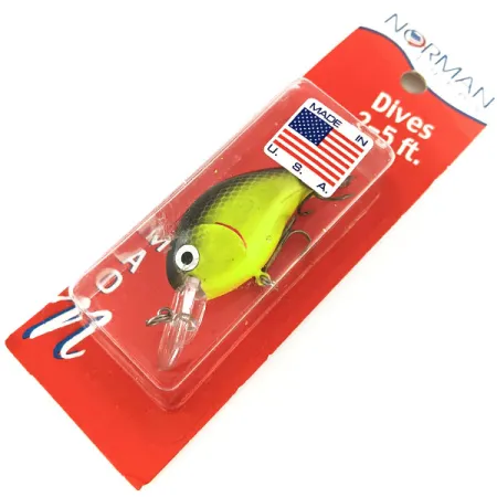 Tämä matalauintinen vaappu sukeltaa 0,6–1,5 metriin (2-5 ft) ja siinä on klassinen, erittäin näkyvä Chart / Musta / Oranssi -väritys, joka tunnetaan värikoodilla MAD-21. Tämä yksilö, tuotekoodilla 11352, on 11 gramman (2/5oz) viehe, jonka pituus on tasan 5 cm (2"). Luokituksella 6 se on käyttämätön ja säilynyt alkuperäisessä puna-valkoisessa vintage-pakkauksessaan. Kirkas uintilevy on integroitu kompaktiin runkoon, joka on suunniteltu sekä heitto- että uistelukäyttöön. Pakkauksen takapuolella on edelleen nähtävissä yksityiskohtainen 'Tuning a Crankbait' -opas sekä paino/pituustaulukko, joka on tyypillinen Normanin Greenwoodin (Arkansas) tuotannolle. Vieheessä on ikoninen 'Made in U.S.A.' -lipputarra näkyvästi muovikuoressa. Maalauspinnalle on ominaista kirkas neon-chartreuse-pohjaväri, kiinteä musta raita selässä ja selkeä oranssi korostus vatsan ja kurkun alueella.