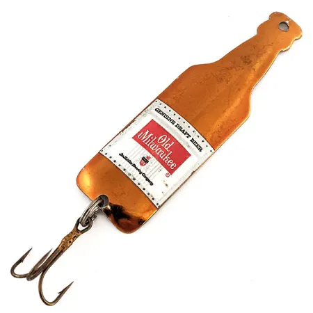 Tämä metallista olutpullon muotoon lyöty keräilykohde on pituudeltaan 7,7 cm (3") ja se yhdistää ainutlaatuisella tavalla panimotuotteiden keräilyn ja kalastushistorian. Etupuolella on kirkas kupariviimeistely ja yksityiskohtainen Old Milwaukee Genuine Draft Beer -etiketti, joka viittaa Jos. Schlitz Brewing Companyyn. Lusikkauistin painaa 11 g (2/5 oz), ja sen pohjassa on yksi kolmihaarakoukku ja pullon korkin kohdalla valmis siimalenkki. Kääntöpuolella on puhdas hopeanvärinen metallipinta, joka luo vastakohdan etupuolen lämpimille sävyille. Tämä tuotekoodilla 13068 tunnistettu yksilö on valmistettu Yhdysvalloissa. Sen kuntoluokitus on 5/5, sillä se on käyttämätön, alkuperäinen etiketti on täysin ehjä ja koukut ovat vailla kulumia.