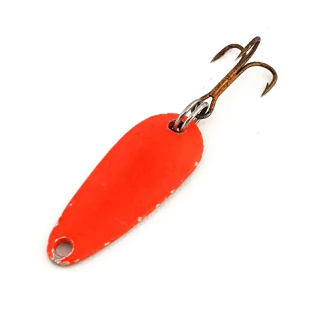 Tämä tasan 3 cm (1 1/4") pituinen vintage-lusikkauistin tarjoaa selkeän pisaramaisen profiilin, joka on suunniteltu kevyeen kalastukseen. Vieheen etupuolella on erittäin näkyvä oranssi viimeistely, joka Otto's Ace UV -nimen mukaisesti loistaa kirkkaasti altistuessaan ultraviolettivalolle. Painoltaan 3g (3/32oz) oleva uistin on tunnistettavissa tuotekoodilla 12763 ja se on valmistettu USA:ssa. Hopeanvärinen tausta täydentää kirkkaan oranssia etuosaa, ja varustukseen kuuluu yksi uistinrengas sekä kolmihaarakoukku. Kuntoluokituksella 5/5 arvioidussa vieheessä on lievää kulumista maalipinnoissa ja koukun metallipinta on tummunut.