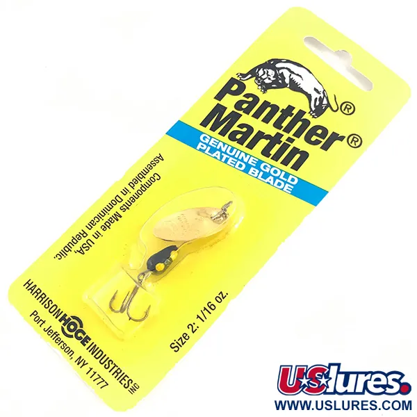 Aito kultaus kuperassa/koverassa lehdessä on tämän Panther Martin 2 -lippauistimen tunnusmerkki. Tämä klassinen malli on suunniteltu tuottamaan korkeataajuista värinää. Painoltaan 2,5 g (3/32 oz) oleva uistin (tuotekoodi 4582) käyttää pisaranmuotoista runkoa, joka on viimeistelty mustalla värillä ja kirkkaankeltaisilla pisteillä. Lehti on asennettu suoraan runkolankaan, mikä takaa välittömän pyörimisen heti veteen osuessa. Kokonaispituudeltaan 5 cm (2") uistin toimitetaan alkuperäisessä keltaisessa myyntipakkauksessaan. Harrison Hoge Industries on listattu jakelijaksi; osat on valmistettu USA:ssa ja koottu Dominikaanisessa tasavallassa. Pakkauksen kääntöpuolella on kuvattu lehden muodon tuottamat erityiset akustiset ominaisuudet. Yksi kolmihaarakoukku on kiinnitetty painotetun rungon alaosaan.
