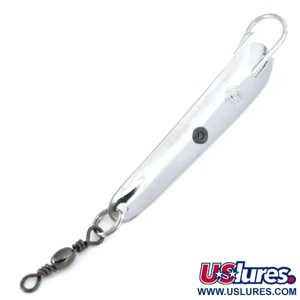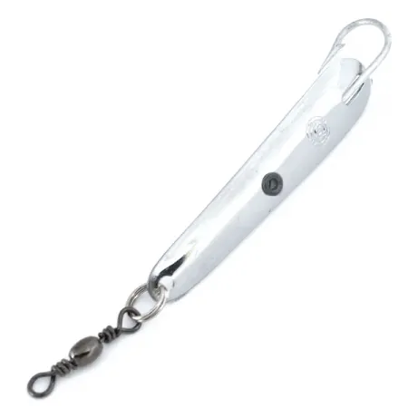 Tämä Italiasta peräisin oleva solakka nikkeliviimeistelty lusikkauistin on pituudeltaan tasan 6cm (2 1/4"). Panther Martin Cheppia con Amo on erikoistunut metalliviehe, jossa on selkeä yksihaarakoukkurakenne; koukku on kiinnitetty suoraan kiillotettuun runkoon. Tämä kyseinen yksilö, tuotekoodiltaan 10874, on käyttämätön. 5,5g (3/16oz) paino on keskitetty heittoja tai vertikaalikalastusta varten. Rungon keskellä on pieni musta pyöreä kuvio, joka antaa hienovaraisen kontrastin erittäin kiiltävälle pinnalle. Siiman kiinnityspää on varustettu tukevalla uistinrenkaalla ja mustatulla tynnyrileikarilla, joka vähentää siiman kiertymistä kelattaessa. Ikoninen Panther Martin -logo on leimattu selkeästi nikkelipinnoitteeseen lähelle koukkua.