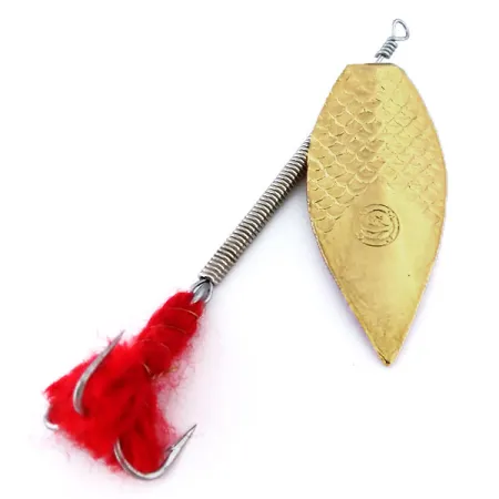 Lippaan stanssatut kultasuomut antavat tälle lipalle aidon tuntuisen tekstuurin, joka erottaa sen tavallisista sileistä pinnoista. Tämä Panther Martin Francese Tirlindada con Lana, tuotekoodi 10274, on aito italialainen uistin, jossa on ainutlaatuinen akselikiinnitteinen lehti. Tämä rakenne mahdollistaa nopeamman käynnistymisen ja laajemman lehden pyörimisen kelattaessa. Lehteen on lyöty numero "9" ja siinä on kaksiosainen viimeistely: etupuolella on kuvioidut kultasuomut, kun taas takapuolella on tasainen punainen kärki ja pieniä punaisia pisteitä. Houkuttelevuuden lisäämiseksi kolmihaarakoukku on koristeltu paksulla punaisella villalla eli "Lanalla". Pituudeltaan 7 cm ja painoltaan 5 g uistin on täydellisen tasapainoinen valinta jokitaimenelle tai ahvenelle. Tämä keräilykappale on käyttämätön ja siinä on alkuperäinen kiilto tallella. Runkolanka on vahvistettu jousimaisella kierteellä juuri koukun silmukan yläpuolella, mikä antaa rakenteelle lisäkestävyyttä.
