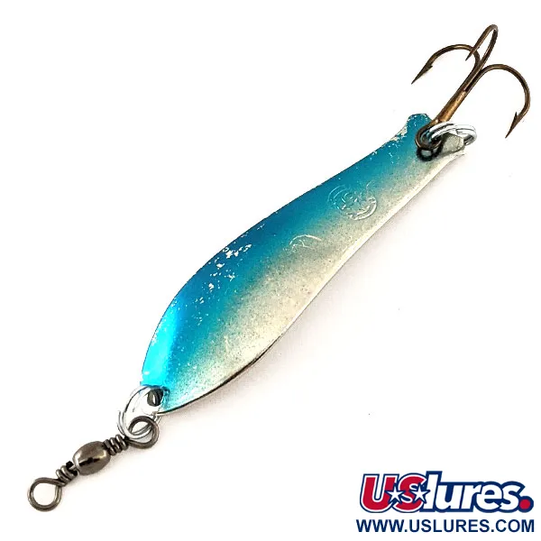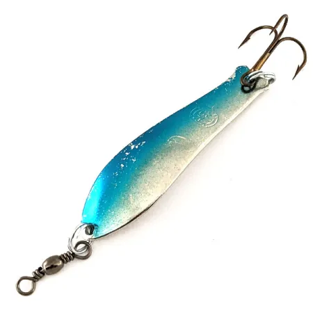 Nikkelöity tausta yhdistettynä eloisaan sinisestä hopeaan liukuvaan etupuoleen määrittää tämän klassisen italialaisen heittolusikan. Tämä Panther Martin Lampo Pesante da Lancio painaa 11 g (2/5 oz) ja on pituudeltaan 6 cm (2 1/4"), mikä antaa tarvittavan painon pitkiin heittoihin ja syvempien vesialueiden tavoittamiseen. Tuotekoodilla 12251 tunnistettava uistin heijastaa eurooppalaisen valmistuksen laatua. Vaikka tämä yksilö on käyttämätön, maalipinnassa on havaittavissa vähäisiä pitkäaikaisesta varastoinnista johtuvia jälkiä, mikä on tyypillistä tämän aikakauden vintage-vieheille. Uistin on varustettu alkuperäisillä osilla: siiman kiinnityksessä on tummapintainen tynnyrileikari ja perässä pronssattu kolmihaarakoukku. Tämä erityinen väriyhdistelmä, jossa nikkelin välke yhdistyy hienovaraiseen siniseen sävyyn, tekee tästä merkittävän löydön Panther Martin -keräilijöille.