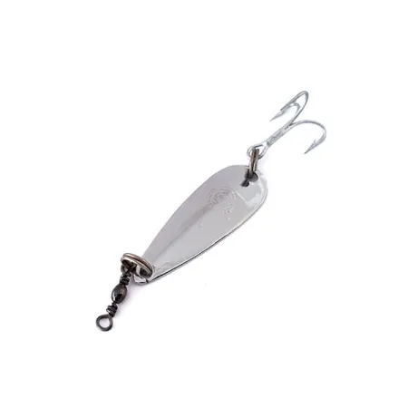 Klassisella nikkeliviimeistelyllä kimalteleva 2,5 cm (1") lusikkarunko edustaa Panther Martin -merkkiin yhdistettyä hienoa italialaista käsityötaitoa. Pisaranmuotoisessa rungossa on sileä, kiillotettu pinta – nimen "Liscio" mukaisesti – joka maksimoi välkkeen eri valaistusolosuhteissa. Italiassa valmistettu ja tuotekoodilla 12238 tunnistettava uistin on varustettu tukevalla uistinrenkaalla ja terävällä kolmihaaralla. Päähän esiasennettu leikari auttaa siimanhallinnassa heiton ja kelauksen aikana. Vain 1,5 gramman (3/64 oz) painoinen Svizzero Liscio on ultrakevyen kirjolohen ja taimenen kalastajan työkalu. Tämä yksilö on käyttämätön, ja sen koko metallipinta ja varusteet ovat säilyttäneet alkuperäisen tehdaskiiltonsa.