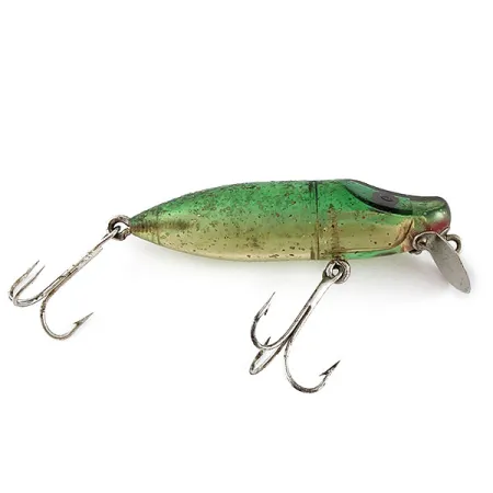 Tämän Paw Paw Bait Companyn valmistaman yhdysvaltalaisen keräilykappaleen vihreät sävyt vaihtuvat vatsapuolella lämpimään kultaan. Pituudeltaan 7,5 cm (3") ja painoltaan 12 g (2/5oz) painava Master Wiggler on keräilijöiden keskuudessa merkittävä harvinaisuus. Vieheessä on sille ominainen metallinen uintilevy ja kahden koukun kokoonpano, ja tuotekoodi 21665 yksilöi juuri tämän kyseisen kappaleen. Sen rakenne edustaa klassista silmukkaruuvikiinnitystä, jota käytettiin Michiganin Paw Paw'ssa valmistuksen aikakaudella. Pintaviimeistely on säilynyt erittäin hyvässä kunnossa kauttaaltaan, ja se on saanut kuntoluokituksen 5/5. Sekä vatsa- että peräkoukut ovat edelleen jämäkät, mikä korostaa näille vintage-puuvaapuille ominaista käyttöön tarkoitettua muotoilua.