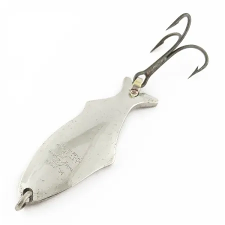 Vankka nikkelipinnoite peittää tämän klassisen 7 cm:n heittolusikan rungon. Tämä Pflueger Last Word, tuotekoodiltaan 24224, painaa tarkalleen 14 g. Koveran puolen meistetty teksti on terävä ja ilmoittaa selkeästi alkuperäksi "Made in USA" mallinimen ohella. Varustukseen kuuluu kookas kolmihaarakoukku, joka on kiinnitetty tukevalla metallirenkaalla pyrstöön, sekä erillinen siimalenkki kärjessä. Kunnoltaan uistin on 4/5, eli metallipinnat ovat puhtaat ja yleisrakenne on edelleen vankka. Rungossa on hienovarainen kalamainen profiili, jossa on selkeä levennys keskikohdan lähellä ja kapeneva takaosa.