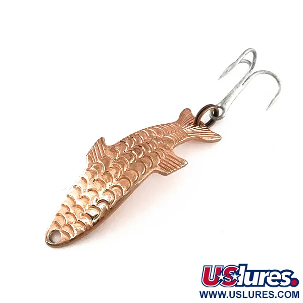 Yksityiskohtaisella suomukuviolla varustettu Acme-lusikkauistin tarjoaa realistisen kolmiulotteisen ulkonäön ja on olennainen osa amerikkalaista kalastushistoriaa. Tämä Phoebe-malli (tuotekoodi 7877) on viimeistelty tyylikkäällä kuparipinnalla 4 cm (1 1/2") pituudessaan. Vain 4 g (1/8 oz) painavan uistimen kaarevassa rungossa on selkeä selkäevä ja kapeneva pyrstö, mikä mahdollistaa tehokkaan kalastuksen sekä matalissa että syvissä vesikerroksissa. Sileälle kääntöpuolelle on selkeästi meistetty nimi "PHOEBE", ja metalli on erinomaisessa 5/5 kunnossa. Varustukseen kuuluu hopeanvärinen kolmihaarakoukku ja uistinrengas perässä, ja pään tarkasti porattu reikä on valmis siiman kiinnitykseen.