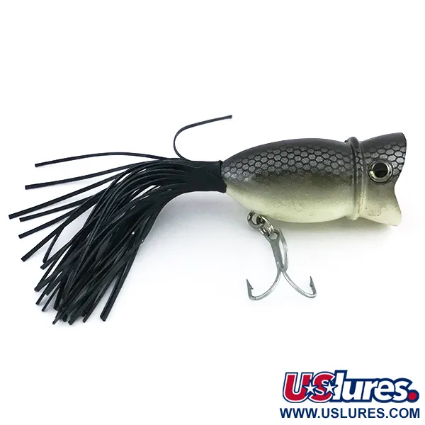 Syvä, kovera punainen suu määrittelee tämän The Producersin 4 cm (1 1/2") pintavieheen etuprofiilin. Malli 8054 painaa 8g (1/4oz), ja siinä on selkeä harmaa suomukuvio vaalean oliivinvärisen vatsan päällä, mikä tarjoaa klassisen kontrastin, joka on tyypillinen vuosisadan puolivälin amerikkalaisille kalastusvälineille. Takaosa on viimeistelty tiheällä mustalla kumihapsunipulla perinteisten höyhenten sijaan, mikä lisää profiilin visuaalista näkyvyyttä merkittävästi. Tämä yksilö on 5/5-kunnossa, ja se näyttää täysin käyttämättömältä alkuperäisen maalin ja osien ollessa tallella. Vieheessä on yksi vatsaan asennettu kolmihaarakoukku ja siiman kiinnityslenkki syvällä punaisessa kurkussa, mikä on tarkoitettu pintakalastustekniikoihin. Kelluvana ja ääntä pitävänä vieheenä se on suunniteltu pintakalastukseen hauen tai suuren ahvenen pyyntiin.