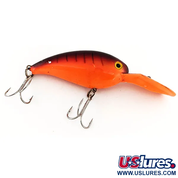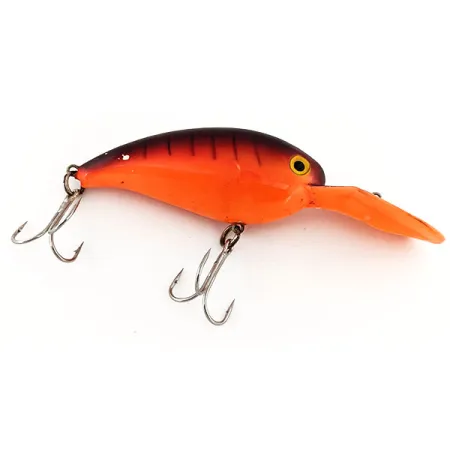 Tämä 14 gramman (1/2 oz) painoinen Producers Deep Z on vankka amerikkalaisvalmisteinen crankbait, joka on suunniteltu tavoittamaan syvemmät vesikerrokset. Red Tiger -värityksessä on erittäin näkyvä oranssi pohja, jota kontrastoivat tumma selkä ja pystysuorat kylkiraidat, luoden klassisen saalisalan siluetin. Pituudeltaan 7 cm (2 3/4") uistin on varustettu pitkänomaisella, integroidulla oranssilla uintilevyllä, joka auttaa runkoa saavuttamaan halutun syvyyden tasaisella kelauksella. Varustukseen kuuluu kaksi terävää kolmihaarakoukkua ja tukeva siimalenkki uintilevyssä. Luokituksella 4/5 oleva yksilö on erittäin siistissä kunnossa, ja siinä on vain vähäisiä iän merkkejä; kelta-mustat maalatut silmät ovat edelleen tarkat. Keräilijät ja kalastajat tunnistavat tämän mallin tuotekoodista 12665, mikä osoittaa sen olevan luotettava syvännevaappu Producers-mallistossa.