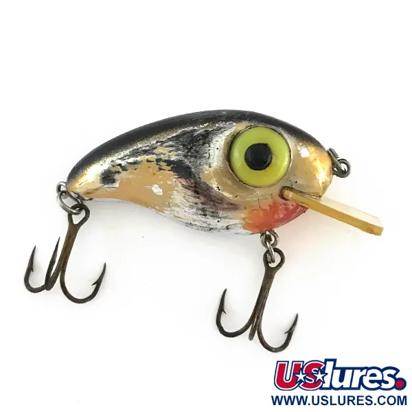 8,5 g (1/3 oz) paino tekee tästä Rabble Rouser Angel-Eye -vieheestä jämäkän valinnan tarkkuusheittoon. Hopeista runkoa korostavat kultaiset ja mustat sävyt selässä, kun taas selkeä oranssi täplä merkitsee kurkun aluetta. Vieheessä on nimensä mukaiset "Angel-Eye" -silmät – suuret, ulkonevat keltaiset silmät syvänmustilla pupilleilla, jotka toimivat korkean kontrastin iskupisteenä. Nokkaan on kiinnitetty kirkas, neliönmuotoinen uintilevy syvälle sukeltavaa uintia varten. Tämä vintage-amerikkalainen uistin, tuotekoodiltaan 8129, on pituudeltaan 5 cm (2") ja siinä on alkuperäiset pronssatut kolmihaarakoukut. Kunnoltaan 4/5 oleva yksilö osoittaa lievää kosmeettista kulumista ja maalin luonnollista ikääntymistä, mikä kertoo sen historiasta keräilylaatikossa. Rungon rakenne ja koukkujen sijoittelu ovat tyypillisiä Rabble Rouserin tuotantokaudelle Yhdysvalloissa.