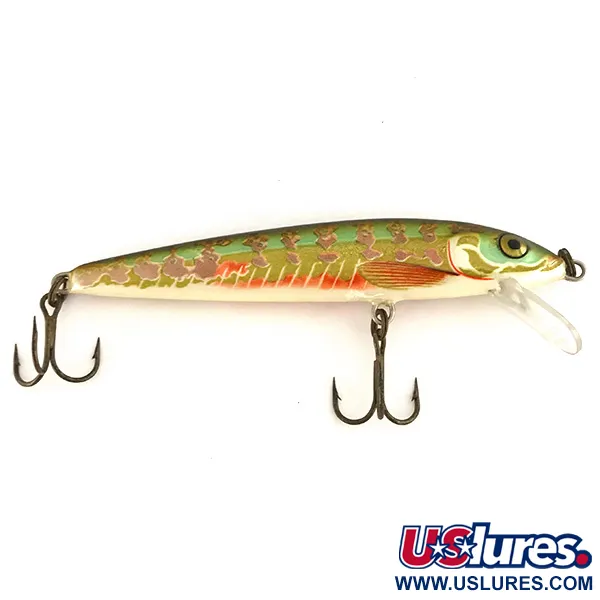 10 g (1/3 oz) paino antaa tälle 10 cm (4") minnow-vaapulle tiheyden, jota tarvitaan 1,5–2,1 metrin (5–7 ft) uintisyvyyden saavuttamiseen heitossa tai uistelussa. Tämän Rapala Husky Jerk Holo -vaapun (tuotekoodi 7477) holografisessa viimeistelyssä on monimutkainen vihreän ja kullan sävyinen kuvio pystyraidoilla ja pehmeän kermanvärisellä vatsalla. Suomessa valmistettu viehe on aito suspend-malli, joka on suunniteltu pysymään paikallaan vesipatsaassa, kun kelaus keskeytetään. Kolme pronssiviimeisteltyä kolmihaarakoukkua ovat teräviä ja tukevasti kiinni alkuperäisissä lenkeissään. Realistiset keltaiset silmät ja puna-oranssit kiduskorosteet tarjoavat visuaaliset ärsykkeet lajeille kuten hauki, ahven ja taimen. Tämä yksilö on erinomaisessa 5/5-kunnossa, ja siinä on täysin kirkas, ehjä muovinen uintilevy.