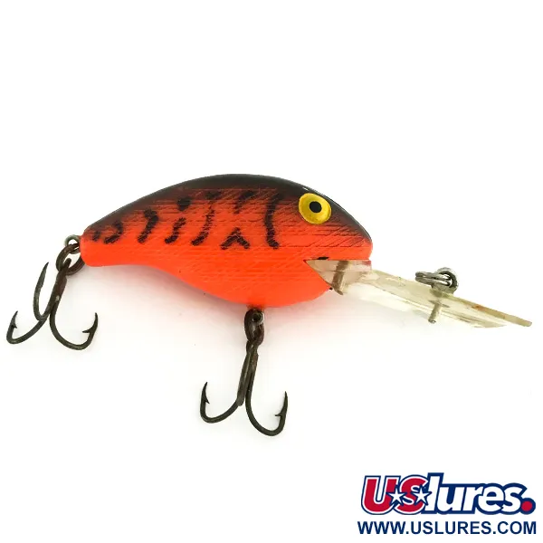 Tämä tasan 5 cm (2") pituinen kompakti crankbait on klassikko amerikkalaisessa syvännevaappujen historiassa. Tiger (Red) -väritys on erityisen näyttävä: siinä on voimakas oranssinpunainen pohjaväri, tummat pystyraidat ja kirkkaankeltaiset silmät. Rebelin Yhdysvalloissa valmistama yksilö kantaa tuotekoodia 7273 ja on varustettu suurella kirkkaalla uintilevyllä, joka on suunniteltu saavuttamaan 2,4–3,0 metrin syvyys. 10,5 g (3/8 oz) paino on ihanteellinen uintisyvyyden ylläpitämiseen sekä heitto- että uistelukalastuksessa. Varustukseen kuuluu kaksi alkuperäistä kolmihaarakoukkua, joissa on vain vähäisiä käytön jälkiä. Viehe on erinomaisessa kunnossa (arvosana 5/5), pinnoite on säilynyt hyvin ja uintilevy on kirkas.