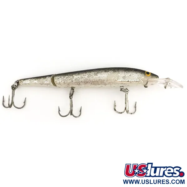 Kimalteleva hopeafolio sileän mustaksi maalatun selän alla määrittelee tämän vintage-yksilön, joka on välttämätön malli syvän veden kohteiden tavoittamiseen. Tämä Rebel Fastrac Jointed, tuotekoodiltaan 9198, on 12 cm pitkä ja painaa 12,5 g. Kelluvaksi syvännevaapuksi rakennettu ylisuuri kirkas uintilevy on suunniteltu saavuttamaan 1,5–4 metrin syvyydet heitossa tai uistelussa. Nivelletty runko on varustettu kolmella alkuperäisellä kolmihaarakoukulla vatsassa ja pyrstössä maksimaalisen tartutuksen varmistamiseksi. Viimeistely on huippukunnossa (5/5), esitellen teksturoidun suomukuvion ja erottuvan kelta-mustan silmän. Tämä Yhdysvalloissa valmistettu viehe heijastaa Rebelin kestävän rakenteen aikakautta, sisältäen kirkkaat metalliosat ja sulavan liikkeen rungon segmenttien välillä.