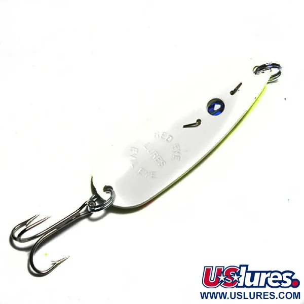 Erittäin näkyvä keltainen viimeistely saa tämän 3" (7,5 cm) vieheen erottumaan missä tahansa vieherasiassa. Tuotekoodilla 0286 tunnistettava Eppinger Red Eye Evil Eye on klassinen USA:ssa valmistettu lusikkauistin, jossa on merkin ikoninen rakenne, erityisesti rungon keskelle kiinnitetty sininen lasihelmisilmä. Tässä 3/4oz (22g) mallissa on kirkkaan oransseja täpliä neonkeltaisella pohjalla ja vastakohtana puhdas valkoinen kääntöpuoli. Lusikka on varustettu alkuperäisillä hopeansävyisillä uistinrenkailla ja terävällä kolmihaaratyökulla, ja se on 5/5-kunnossa oleva käyttämätön pala kalastushistoriaa. Tämä malli on peräisin ajalta, jolloin Eppinger osti Red Eye -yhtiön, säilyttäen keräilijöiden arvostaman helmisilmäominaisuuden. Paksu metallirunko on suunniteltu heittokalastukseen ja uisteluun vaihtelevissa olosuhteissa.